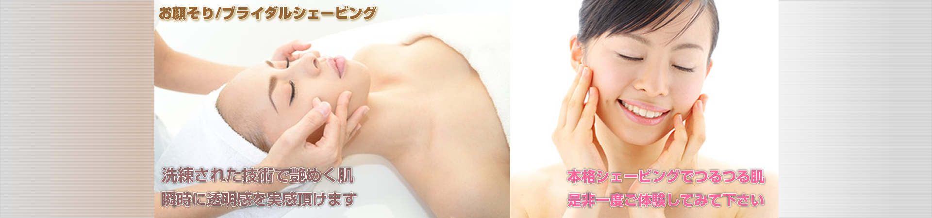 理容室としてメンズカット、女性のお顔そり、レディースシェービング、ブライダルシェービングを